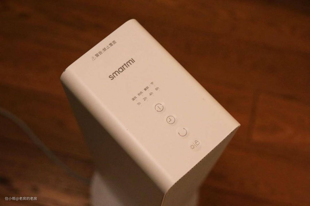 操控方面,知名暖风机可谓是相当的丰富,一共提供了三种操控方式。首先是直接在暖风机顶部进行操作,4个按钮分别对应长按开关机(短按档位切换)、快捷定时、摆头设置以及童锁设置。