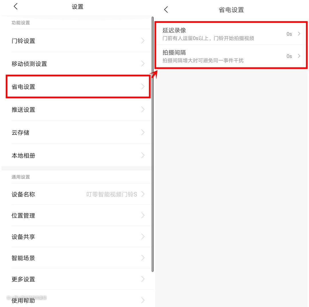 在“省电设置”中,有两个选项,分别是“延迟录像”和“拍摄间隔”。其中延迟录像最高支持 30s延迟,而拍摄间隔最大支持 3min间隔 ▲