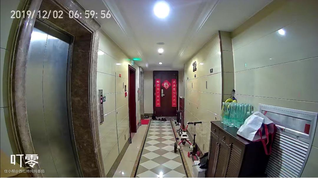 这里需要说明的是,这款智能门铃无法直接调用摄像头查看门外情景,只能在触发门铃时,才能查看录像内容。楼主展示的这张图中,是楼主的老婆触发门铃后,进入了电梯,所以看起来像是直接调用了摄像头。