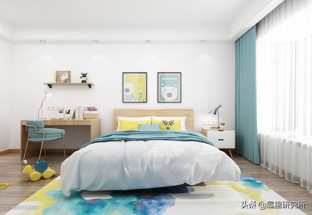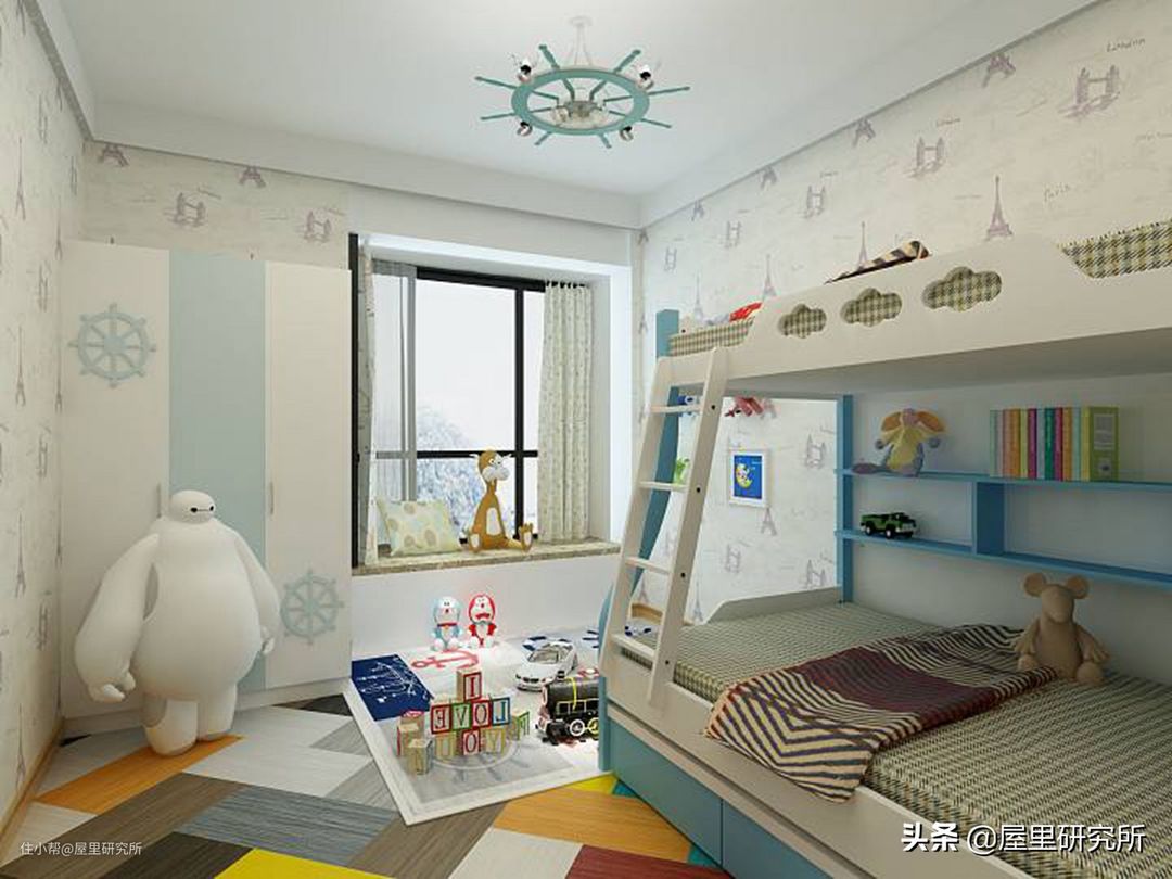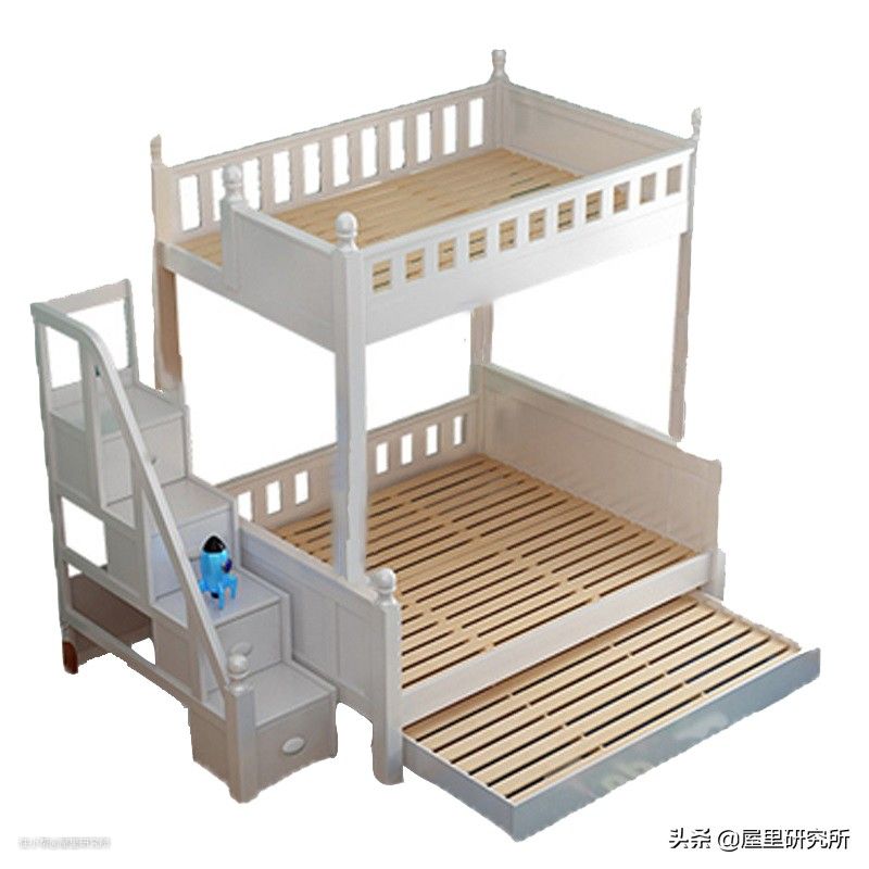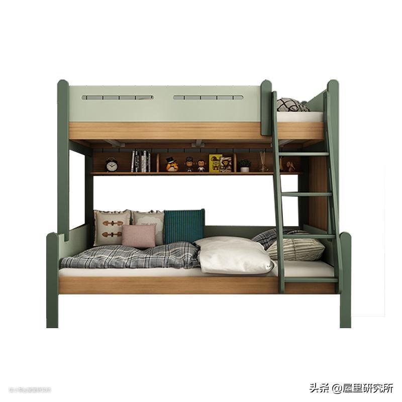 主卧之外,就是侧卧。侧卧的床,用的最多的是高低床,因为现今大多数家庭都会要两个孩子,预备好高低床,既能在本就狭小的侧卧省出些空间,又能未雨绸缪,可留一个床铺给二宝使用,一举多得。而且即便只要一个孩子,那多出来的床位也能做置物空间,还能节省下衣柜等家具的花费,何乐而不为。