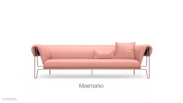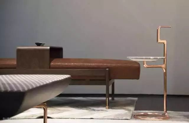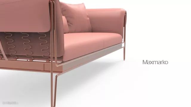 上 新品无界沙发,设计师故意把蛇形弹簧露在外面,并电镀出了玫瑰金的效果 图源:木美