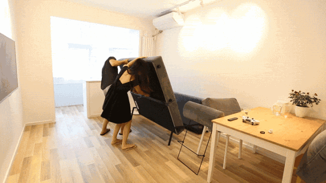 别的北欧品牌卖脸,这个丹麦牌子却兢兢业业走技术路线,主要研究不占空间、原地变床的技术。