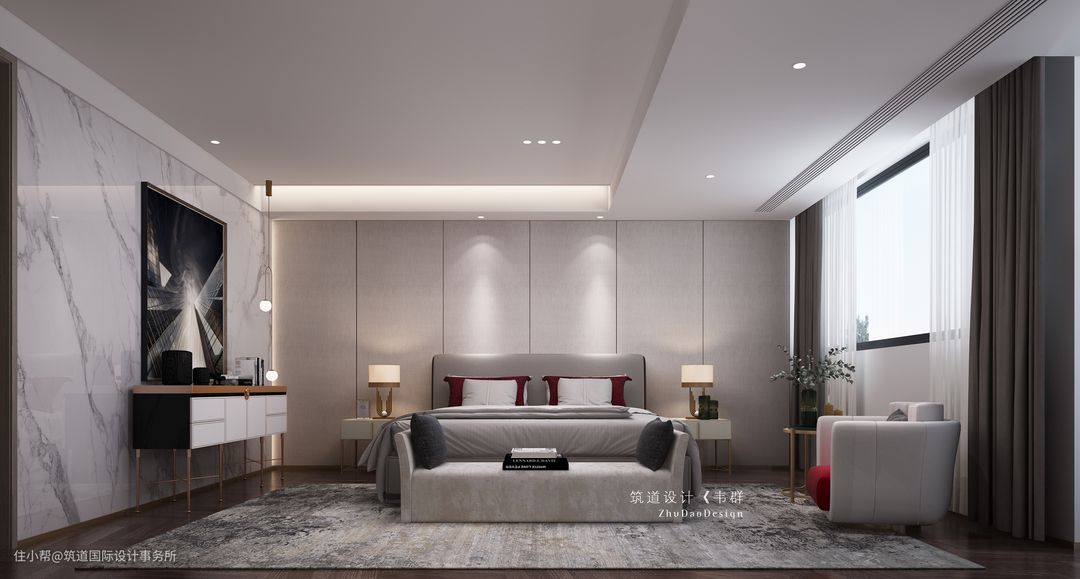 选择床头柜的时候,首先考虑卧室的面积。房间面积较小的情况下,建议只放一个床头柜,选择设计感强的床头柜,这样可以减少它的单调性。面积比较大且收纳需求高的情况下,建议选择两个床头柜。