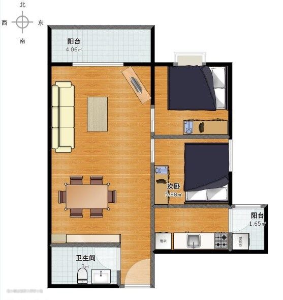 户型:两室两厅一厨一卫