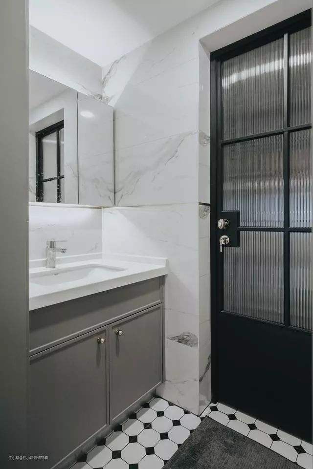公卫跟主卫同样定制浴室柜,颜色和门型全屋统一。