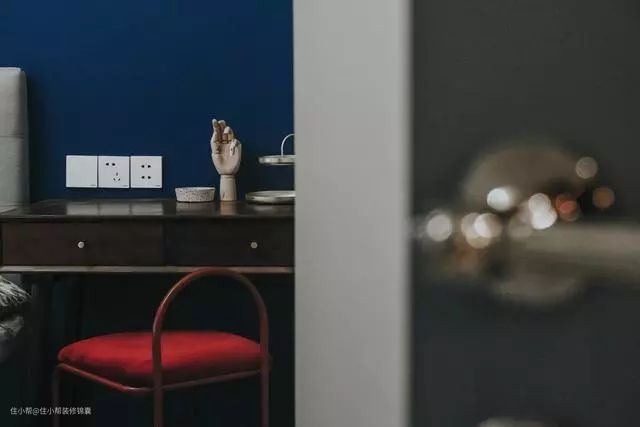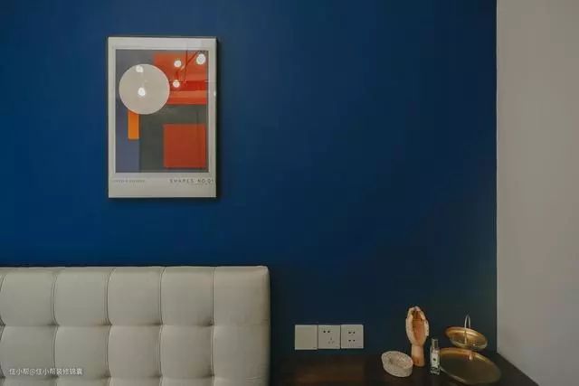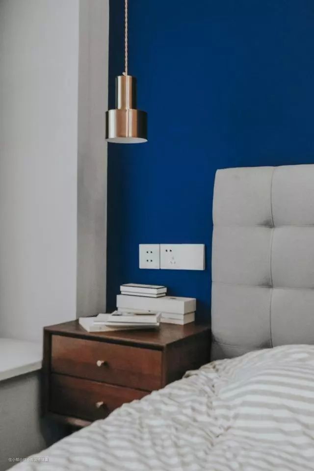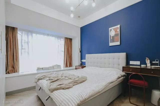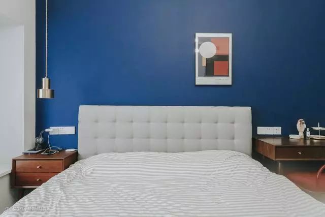 卧室蓝色墙面分色,增加视觉多样性,让空间暖起来。