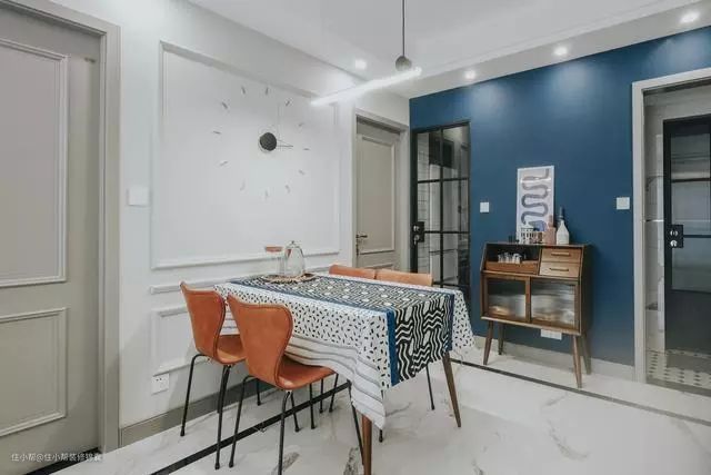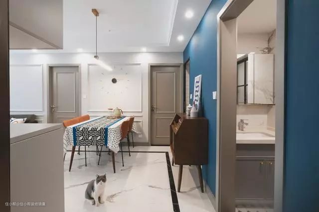 过道墙面以一面蓝色,增加视觉多样性;
