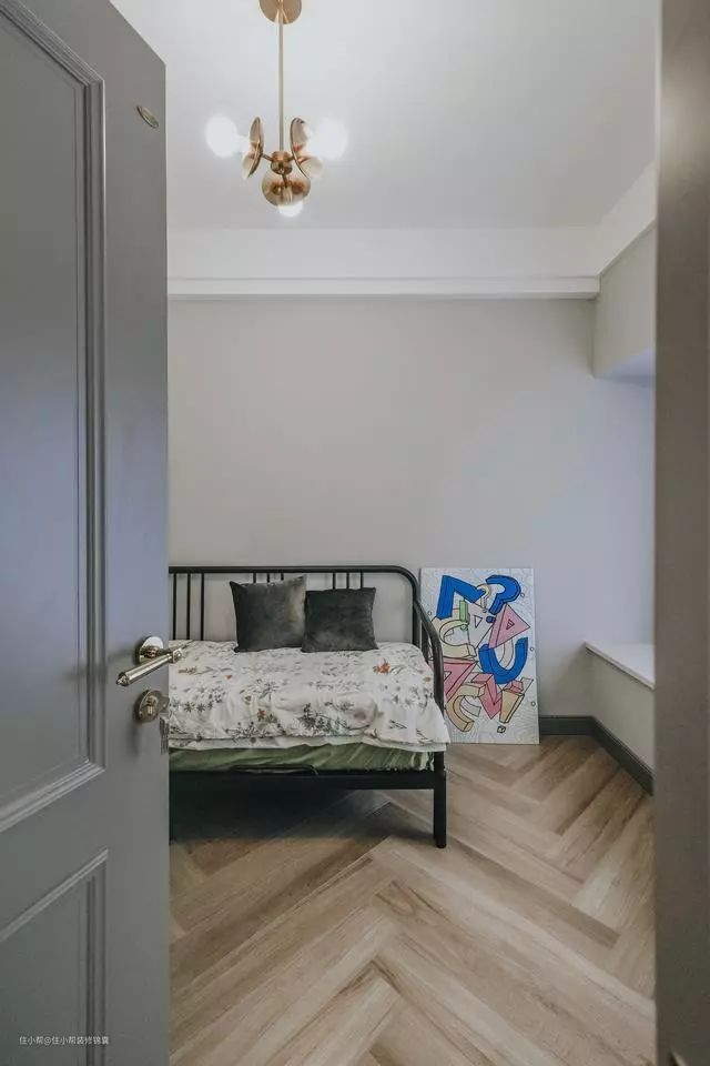 次卧空间比较小,就放置了一个单人小床,如果买常规的床体又会显得空间局促,所以宁愿选择颜值高的床。