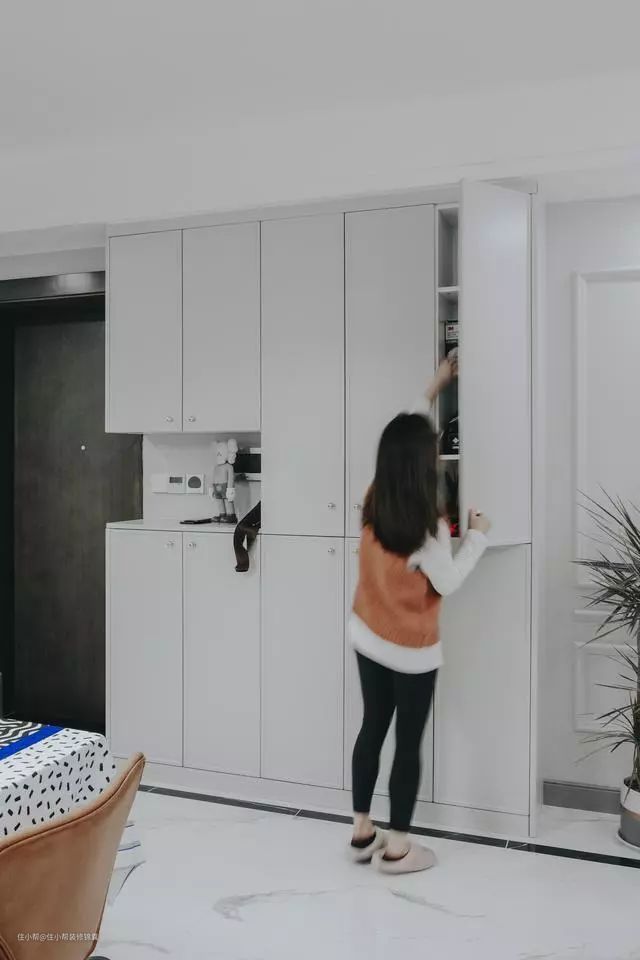 这是苏苏在与我们沟通方案时,常常会说到的一点,家就是要自己喜欢,由于户型紧凑,苏苏很在意空间利用,要有足够的储物空间,所以我们将储物收纳纳入到首要空间改造中。