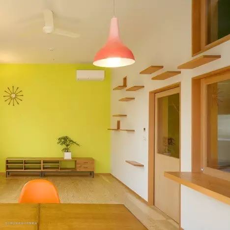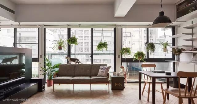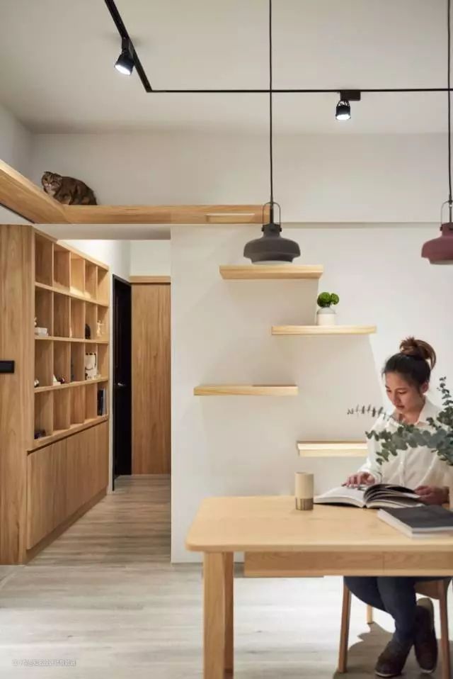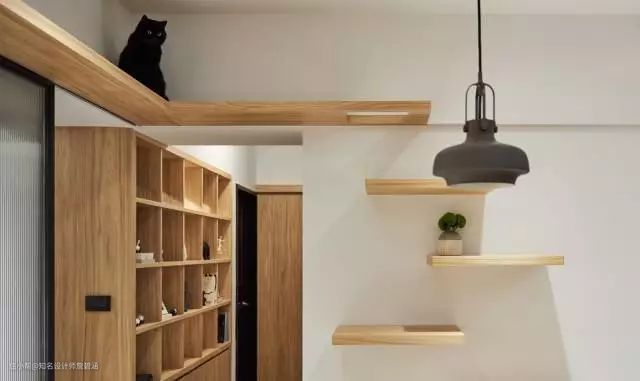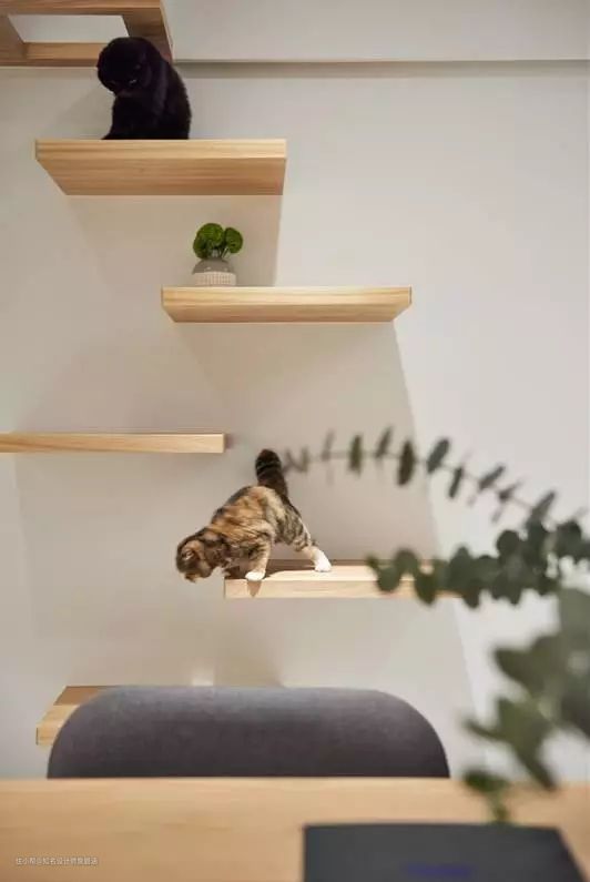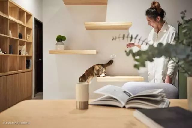 仔细看设计师还使用了绿色的猫跳板作为此空间的点缀