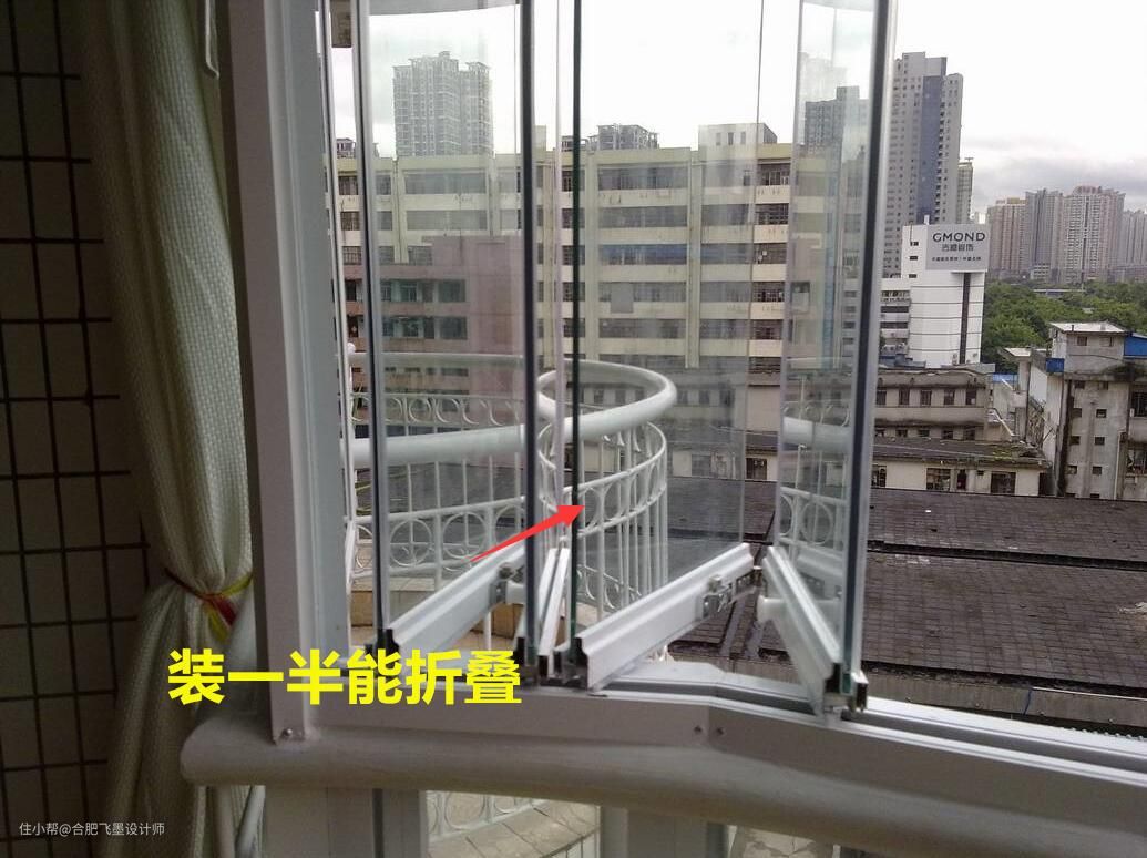 封一半折叠玻璃窗装一半,开放式阳台这样封,物业也不敢多说二字