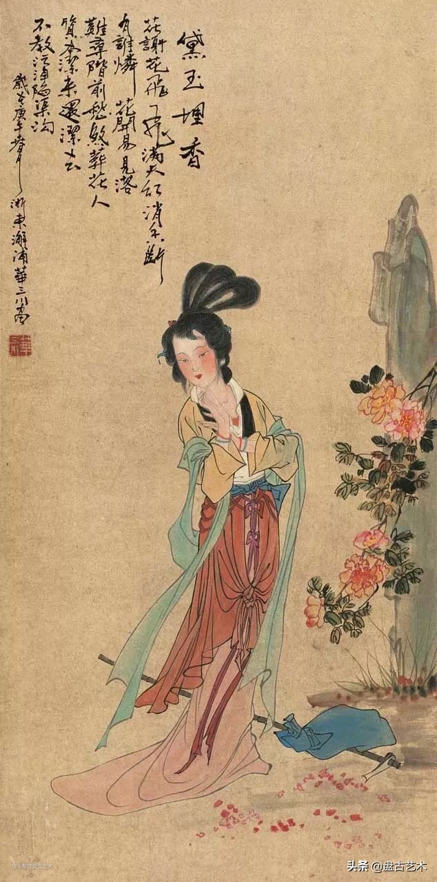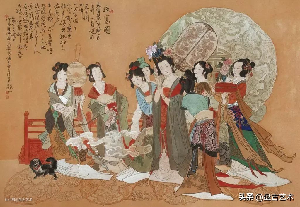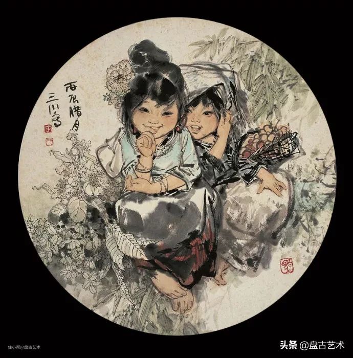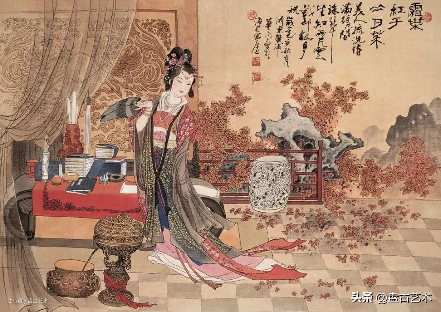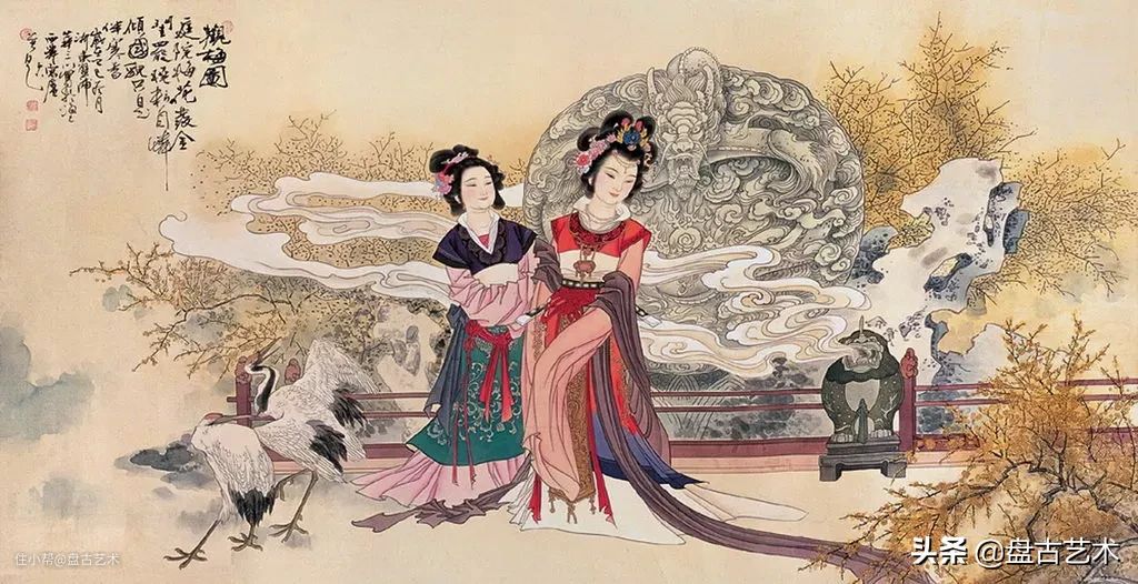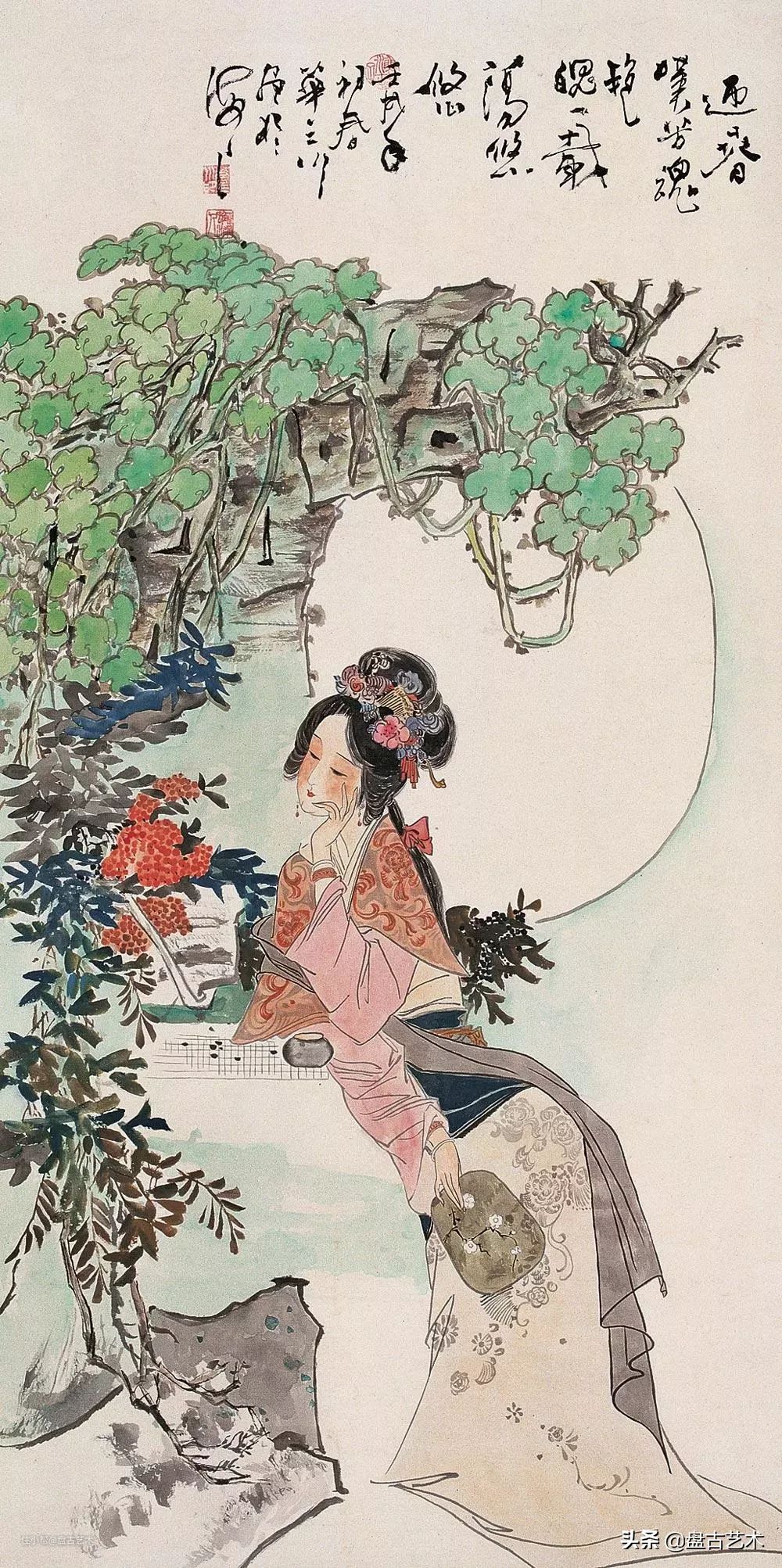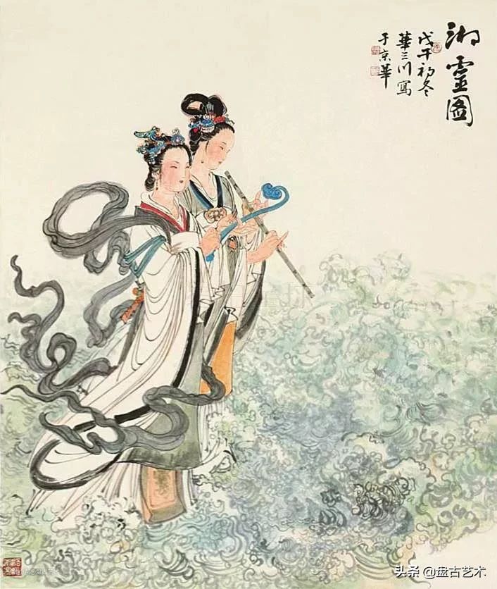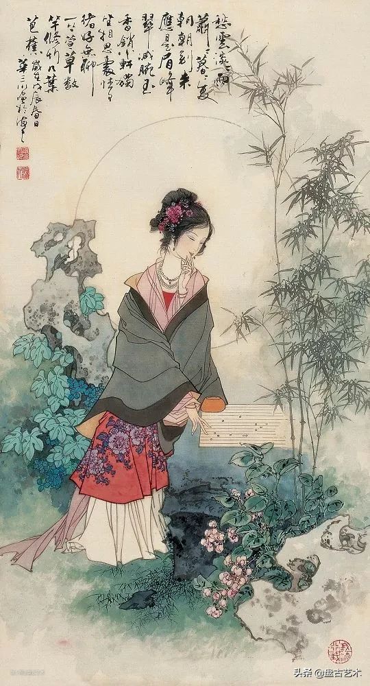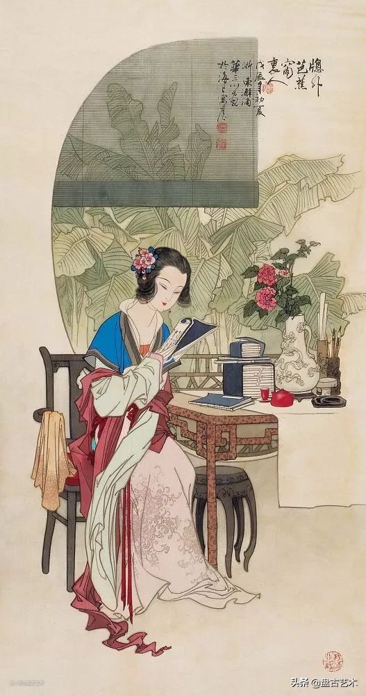 华先生的画在色彩上继承了传统工笔人物画的技法,也融会吸收了西洋水彩画的表现技巧,中西合璧相得益彰。他笔下的仕女或美女,以其曲雅和恬静、灵秀和质朴的艺术品格,摆脱了旧式仕女画过于华丽和甜腻的习俗,有一种超然脱俗的凝重之同和优雅飘逸的灵动之气。