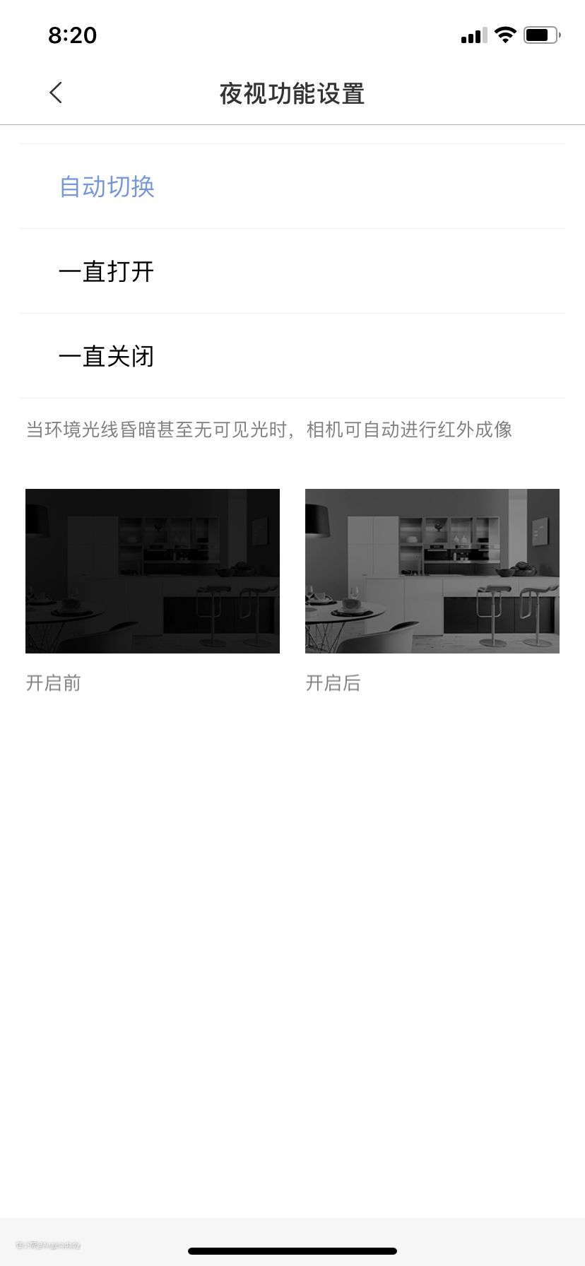 ▲宽动态范围模式;夜视功能设置,可在光线不足时,自动进行红外成像。