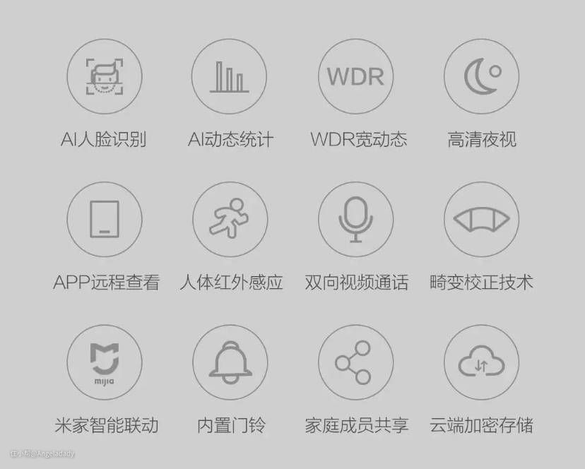 •具有AI人脸识别技术,可针对陌生访客识别其大概年龄、性别等,为家人和朋友标记身份,下次来访即可识别;