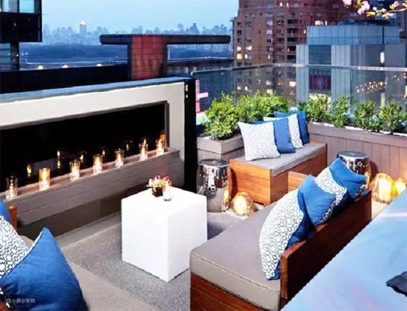 空间有限的话,也可以只摆放沙发或者长凳,无形之中又多出了一间房,天气好的时候可以在此晒太阳,晚上还能坐在这里看星星,简直不要太浪漫。