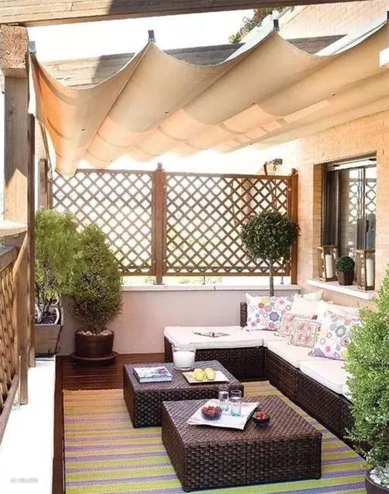 当然也可以在露台上方打造一个简易帐篷,用来遮风挡雨,将此打造成另外一个小客厅,无形之中多了一个客厅,来家里做客的朋友,谁看谁羡慕。