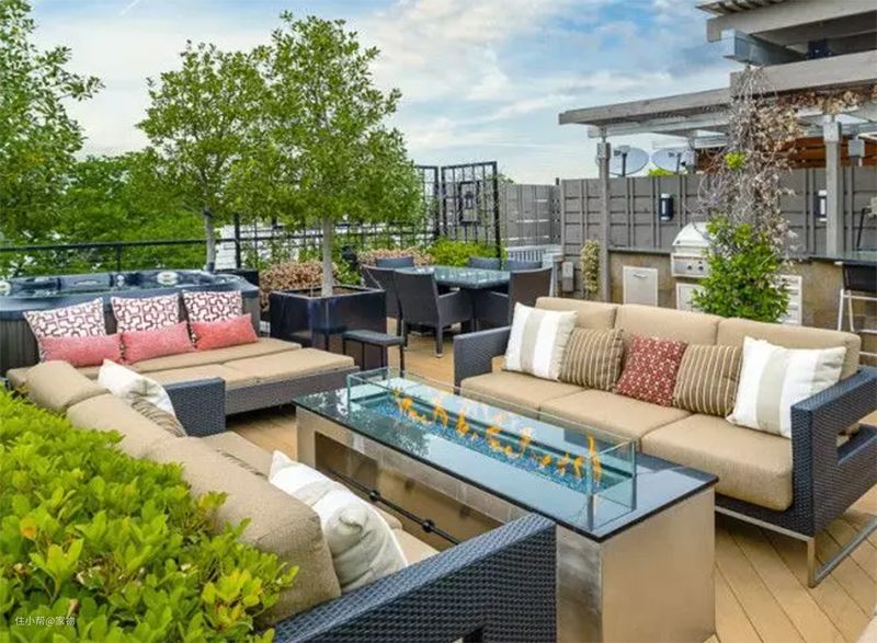 在露台设计烧烤架,这怕是吃货的终极梦想了吧,只要有时间就能坐在这里烧烤,享受各种美味,坐在沙发上吃烧烤的感觉,简直不要太爽。
