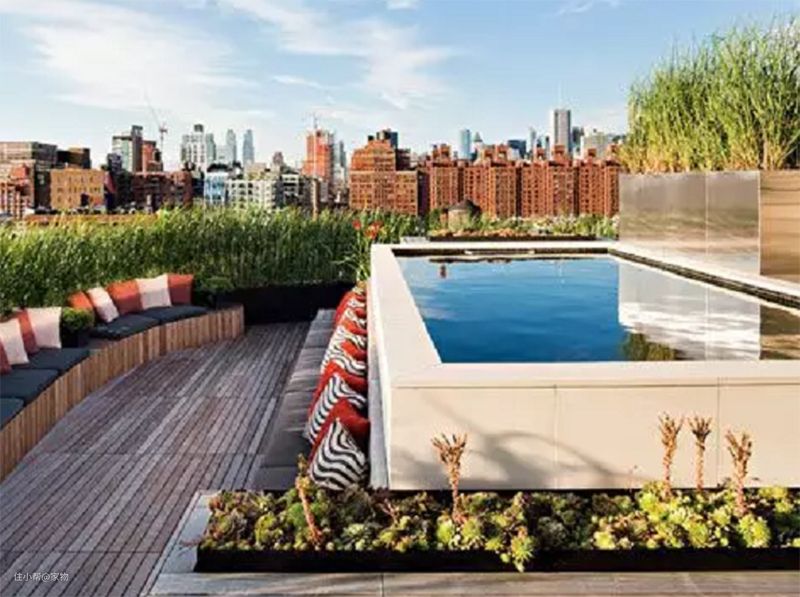 喜欢运动健身的话,也可以在露台上打造一个游泳池,在夏季的时候不用出门就能享受日光浴,这是没有露台家庭享受不了的待遇,不过也有缺点,就是到了冬天就会被闲置起来。