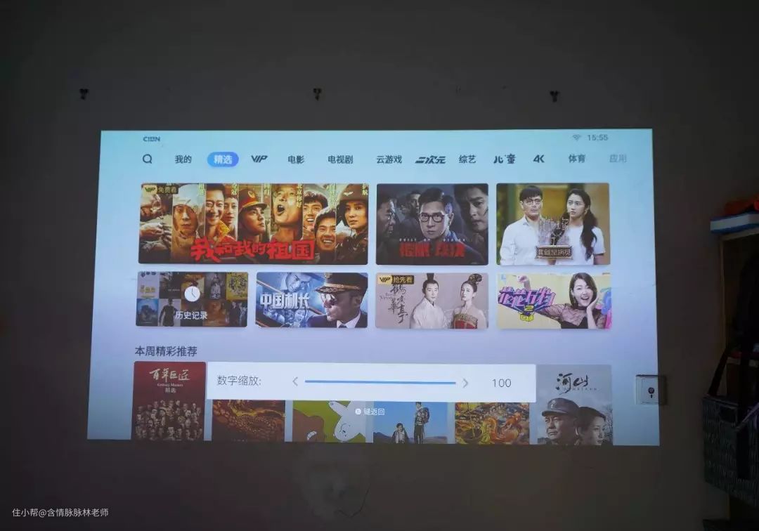 ▲我们还有一种情况,在使用投影仪的时候经常需要挪动位置来匹配墙面的大小,现在的投影仪基本都需要前后的挪动才能匹配更合适的画面的大小,坚果J9 支持图片数字缩放,也就意味可以在不挪动投影仪的情况下调整画面的大小。