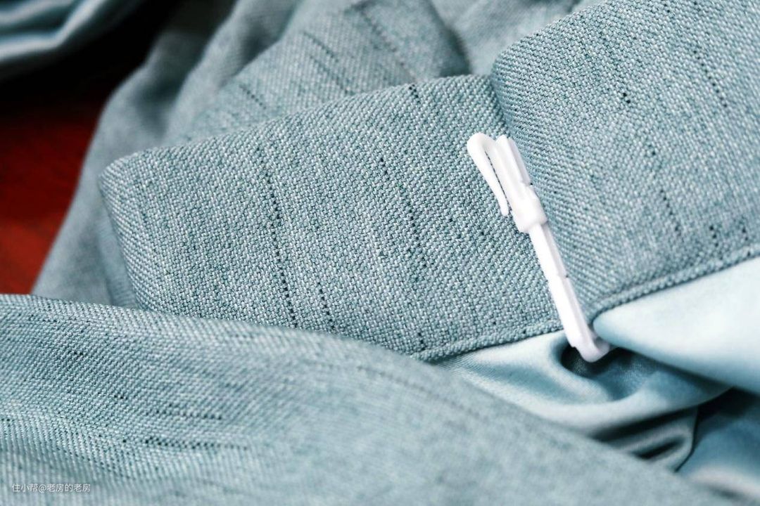 邦先生的窗帘手感非常柔软,折痕处的处理也算比较自然。在窗帘顶部,出厂时已经安装好了挂钩,咱们拿到后直接挂在窗帘轨道上即可。而且,这个挂钩是可调节高度的,虽然说窗帘的整体尺寸是经过咱们的测量确认,但万一以后想离地面更近一点或者再高一点,通过调节挂钩的高度就能实现。