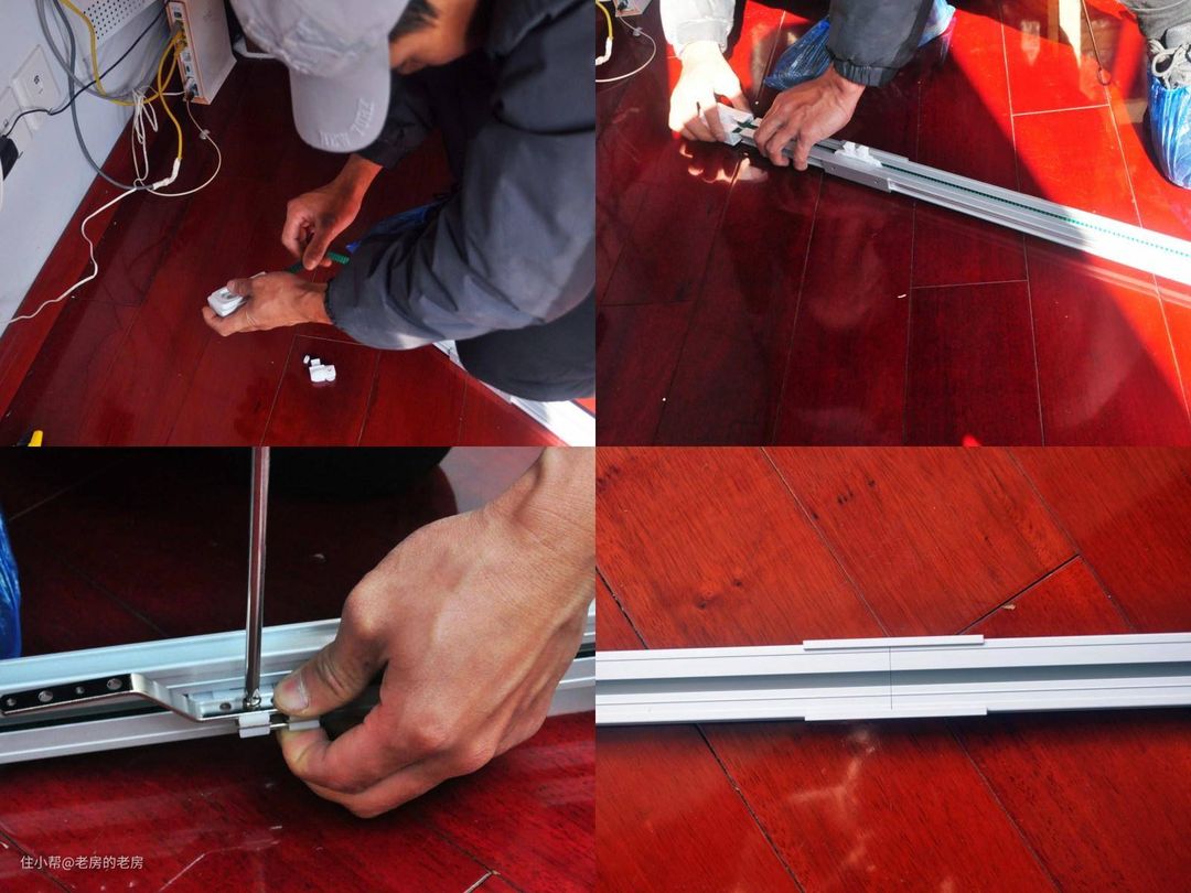 得益于标准化的模块设计,窗帘轨道的组装也不难,在房间顶部的定位打孔也很简单了很多。