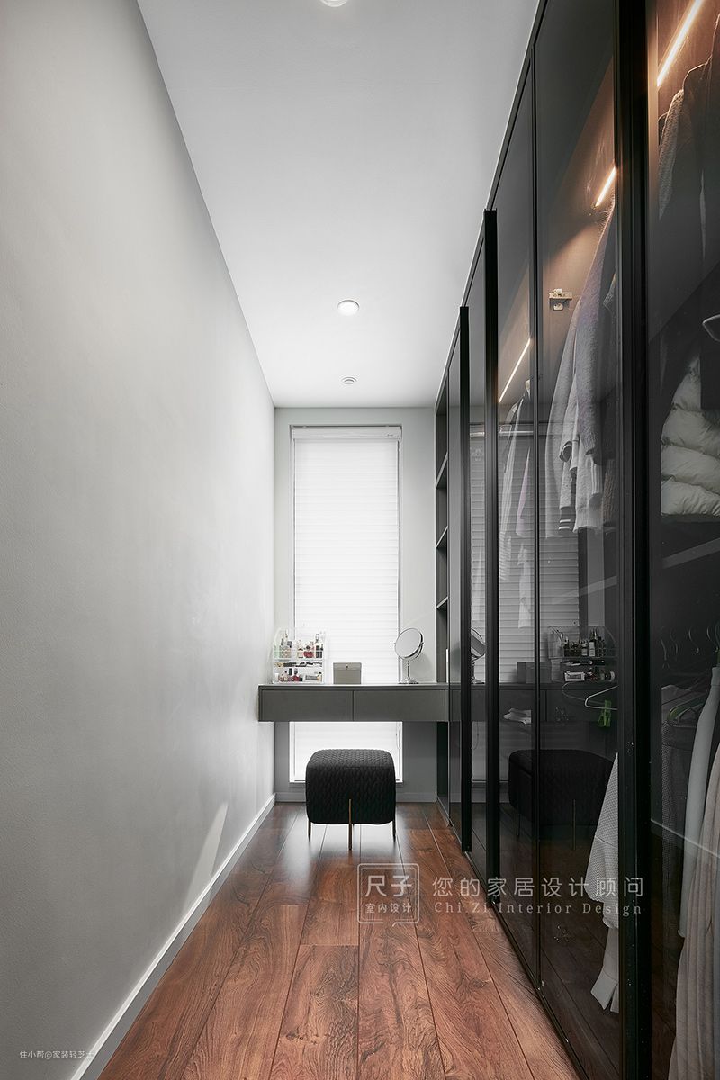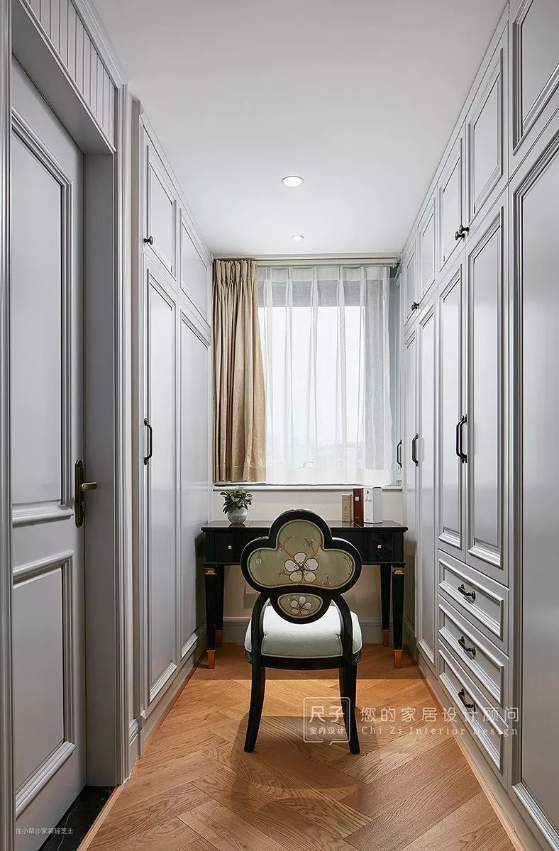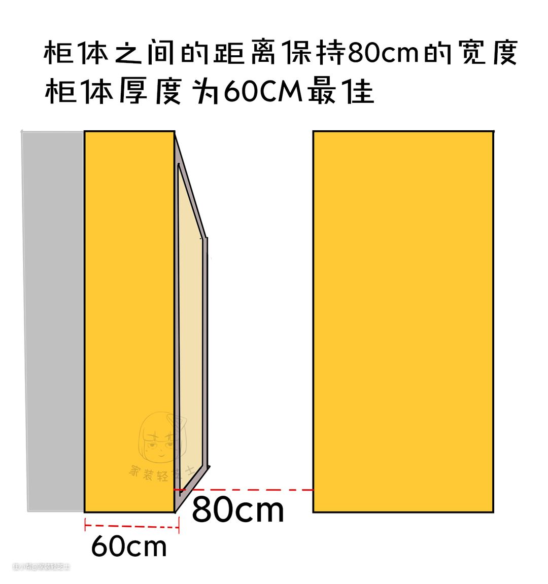 衣帽间的通道需要留出80CM的宽度,不仅拿取衣服更方便,还能放下一个梳妆台。