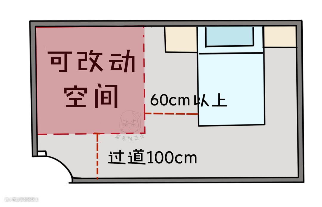 当房间放完必备物品后,留足通道的宽度,剩下的面积就可以自由组合啦。