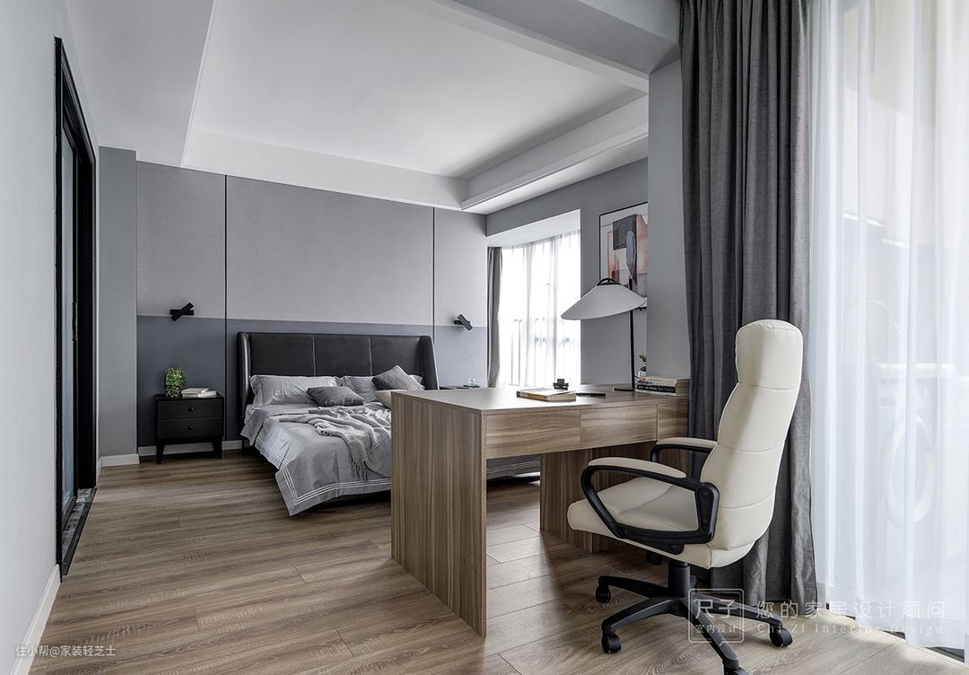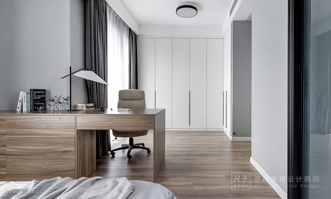 业主将相邻闲置的房间打通并入主卧。用书桌作为隔断,将房间分成两大部分。