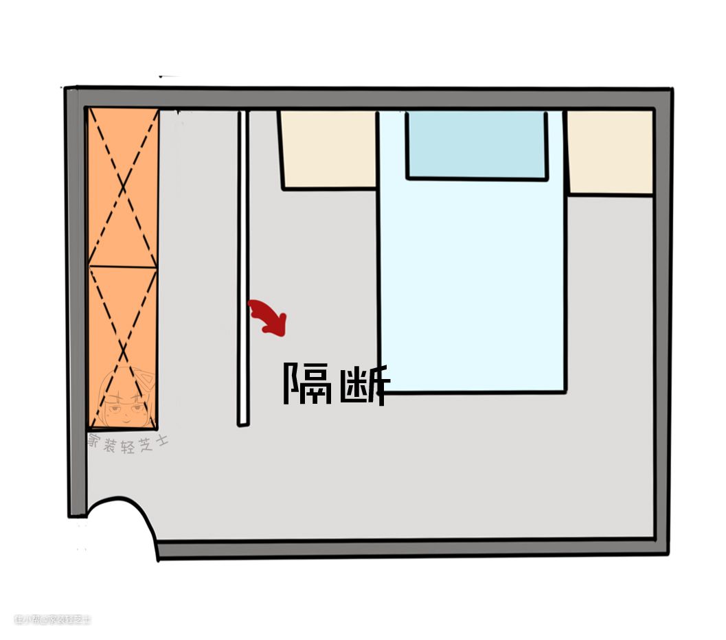 或者制作一个隔断让柜子靠墙,形成衣帽间。