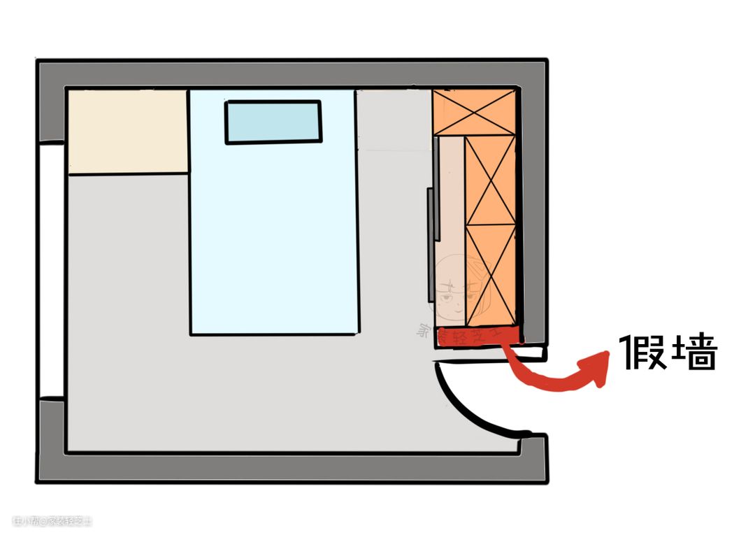 这种方式是做一面假墙,将衣帽间“嵌”入假墙中。