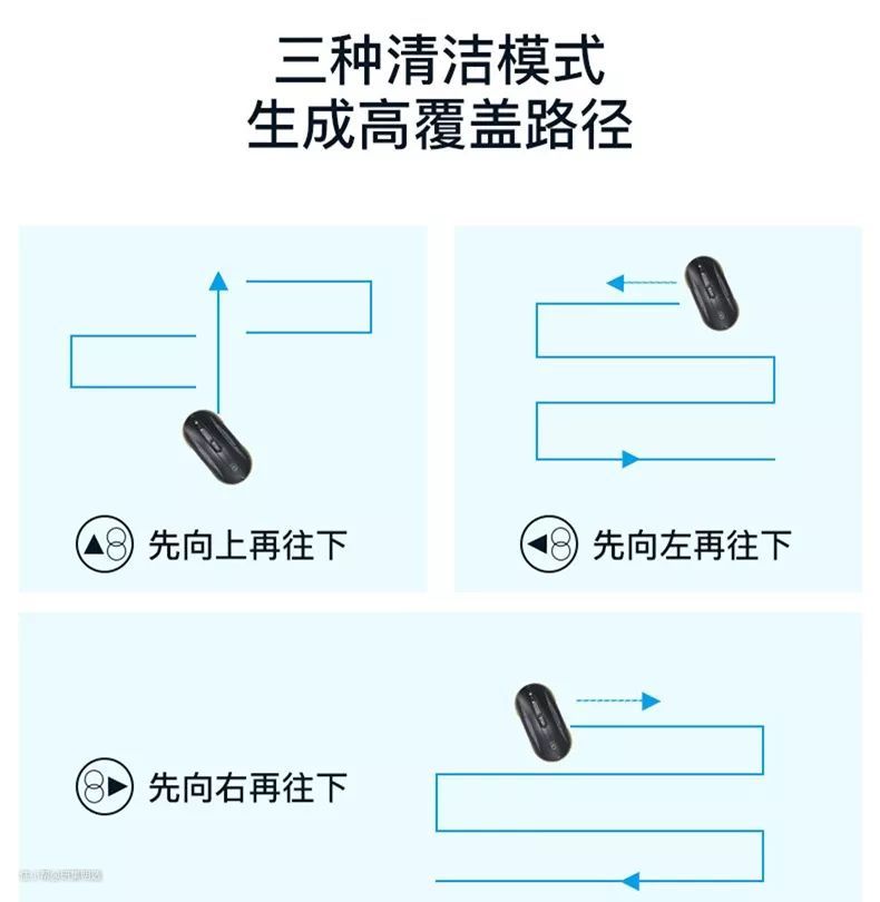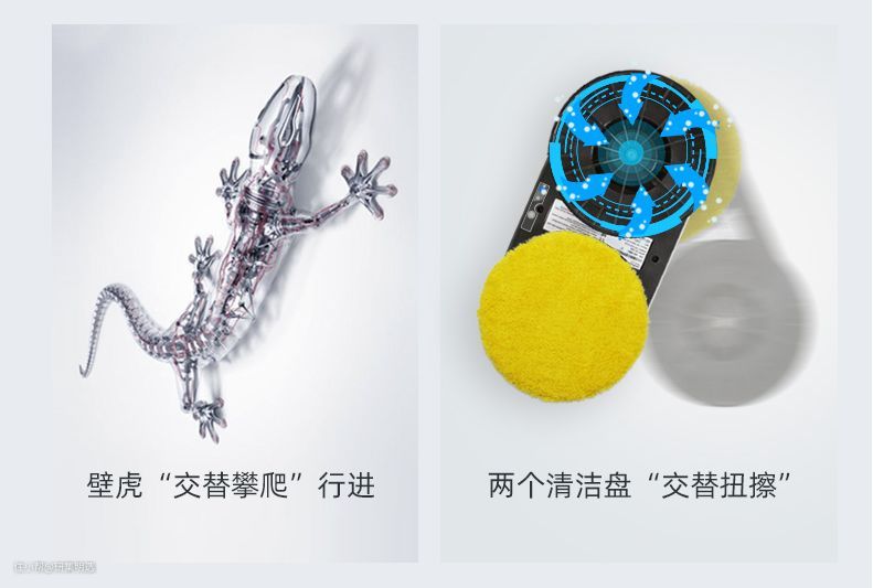 清洁功能是检验一个擦窗机器人的标准,双陀螺仪结构是玻妞的专利。玻妞擦窗机器人的两个清洁盘交替旋转扭擦,采用仿生壁虎“交替攀爬”行进的姿势,每擦完一行,都会把上一行留下的水痕抹掉,擦的会更干净。