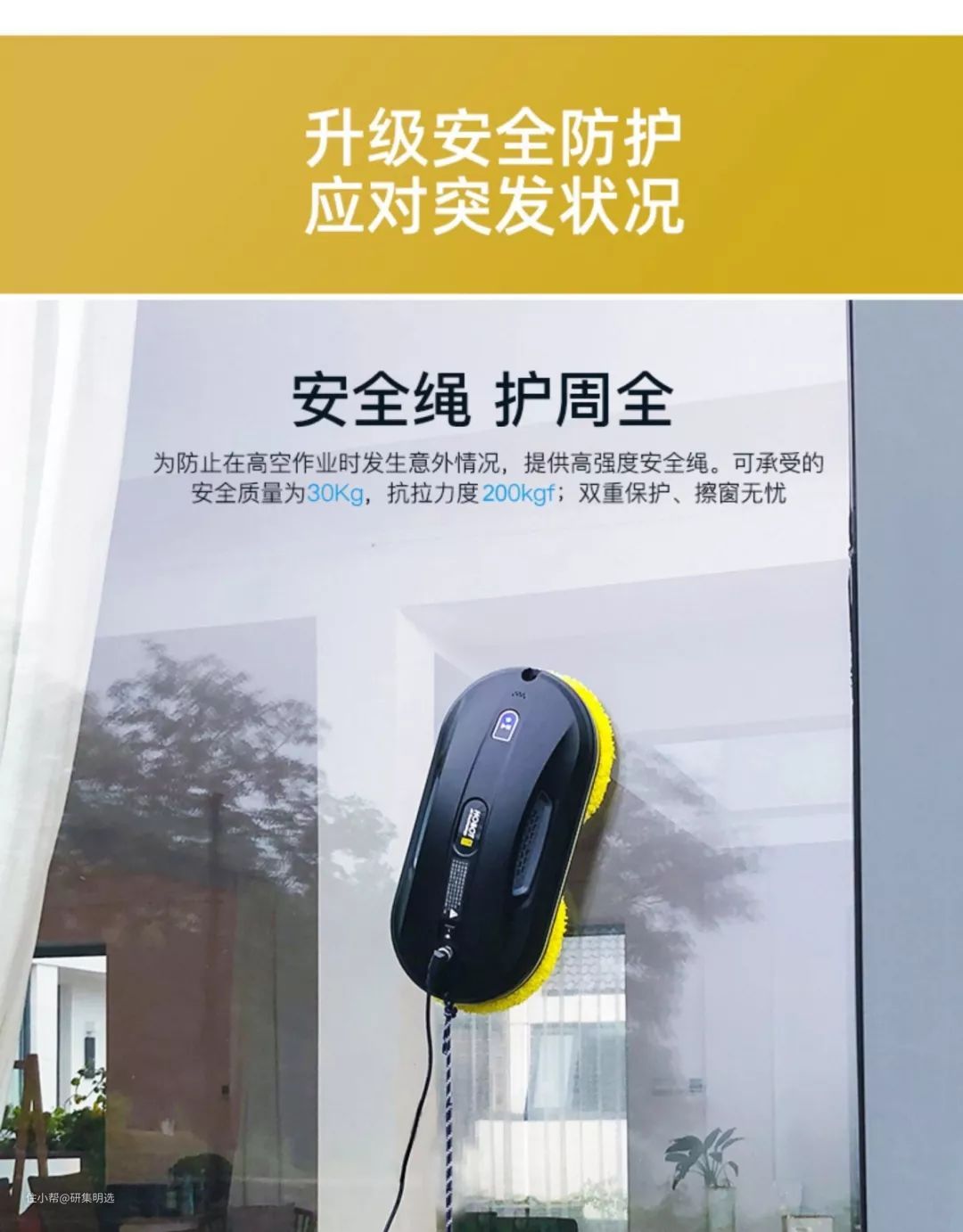 一台擦窗机器人,操作麻烦,重,不方便独立操作。它运转起来的时候,恨不得紧紧攥住线,生怕它掉下去。