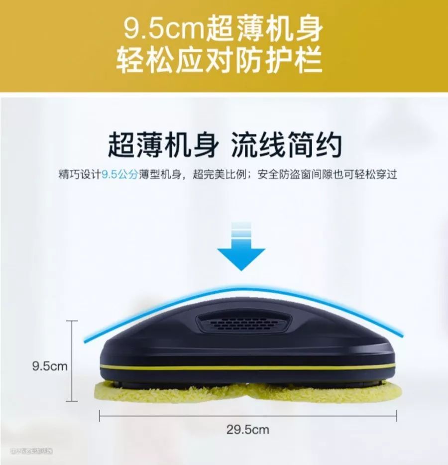 智能变频:变频电机会根据窗户每块区域的脏易程度,自动调节吸力,确保擦拭完成后窗户任何地方都是干净的。