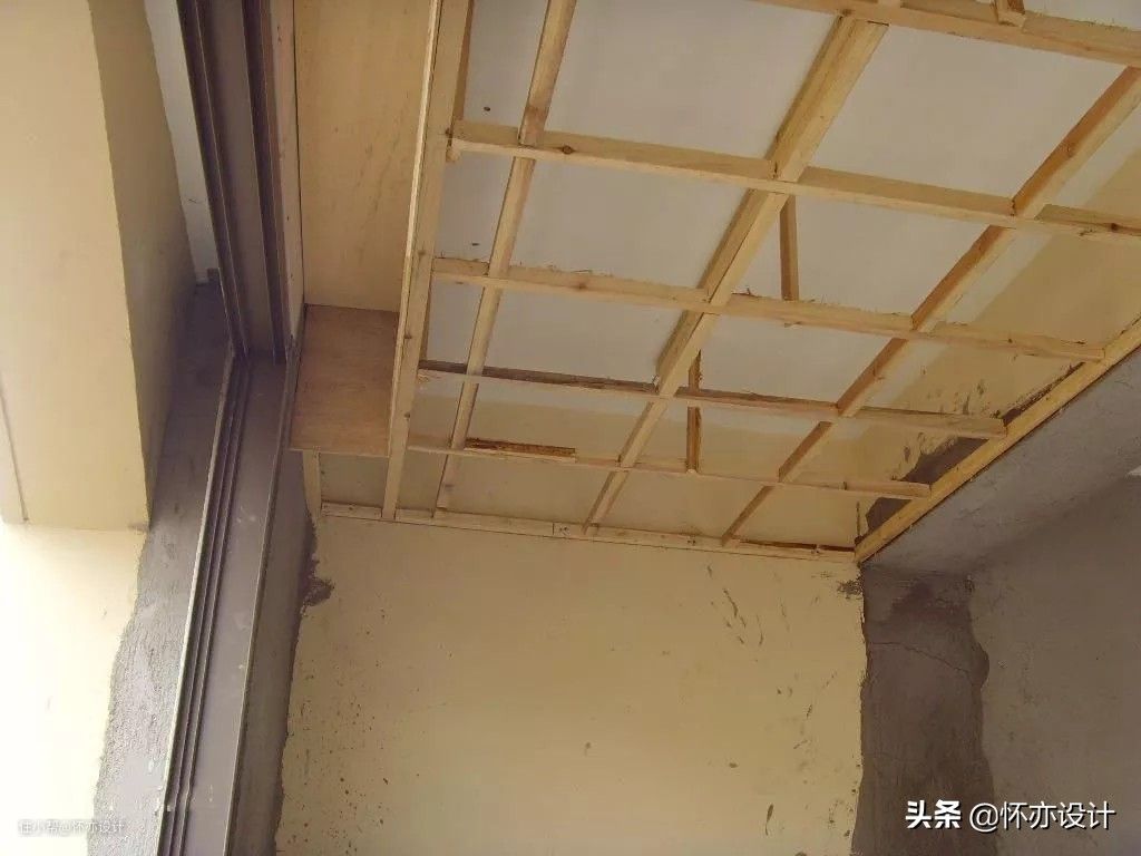 遮挡板可采用木构架双包镶,并把底边做封板边处理。遮挡板与顶棚交接线要用棚角线压住。