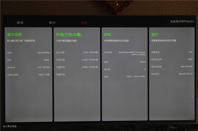 如文章开头所说,创维小湃电视盒子MAX采用的是目前电视盒行业中较高的配置,拥有2GB运行内存和32GB存储空间。为了证实官方所说属实,所以先用安兔兔做一个简单的测试。从结果上来看,创维小湃电视盒子MAX的硬件配置确实达到了官方宣称的那样,在运算能力和解码能力上都领先于大多数同类产品。