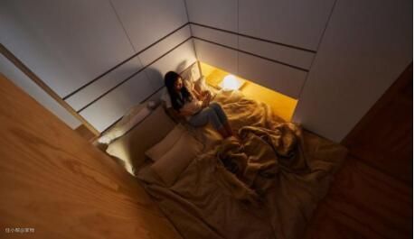 如果户型狭窄,众多设计可以多往墙上靠,比如隔板是收纳,比如壁灯,如果担心不方便还可以设计折叠灯,哪里有需要往哪里拽。