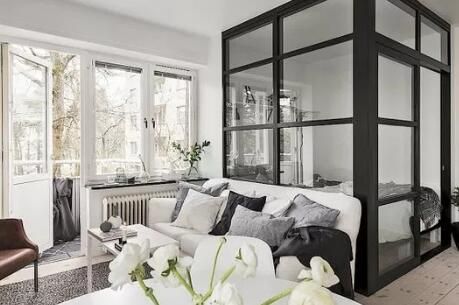 如果想兼顾私密性的话,则可以设计各种软隔断,比如铁艺玻璃隔断,需要时直接拉帘子即可。