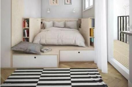 既然是地台,那么床下也可以用来收纳,但小编建议可以使用抽屉,不过深度要注意,如果不是特备需要收纳,半米左右就足够了。