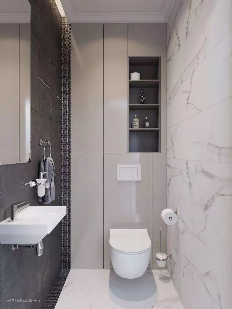 马桶区域不用多大,如果能用挂墙式马桶,做好设计(比如头顶上专用筒灯),是可以又好看又好用的
