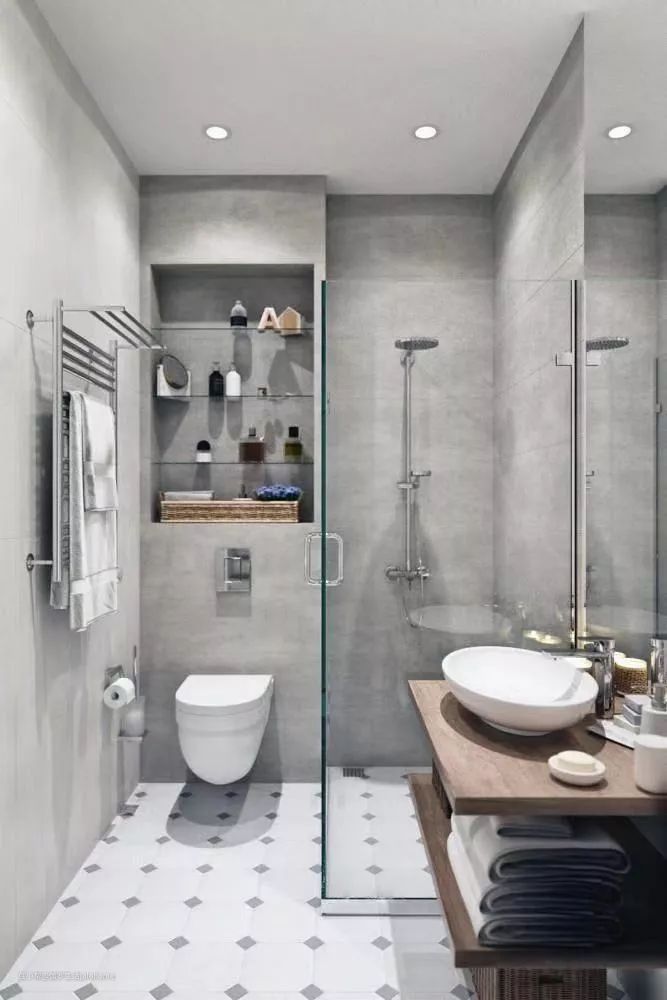 像这种“极简”风,好看吗?好看的。但是冬天的时候毛巾挂在哪呢?洗澡的时候沐浴露洗发水放在哪呢?