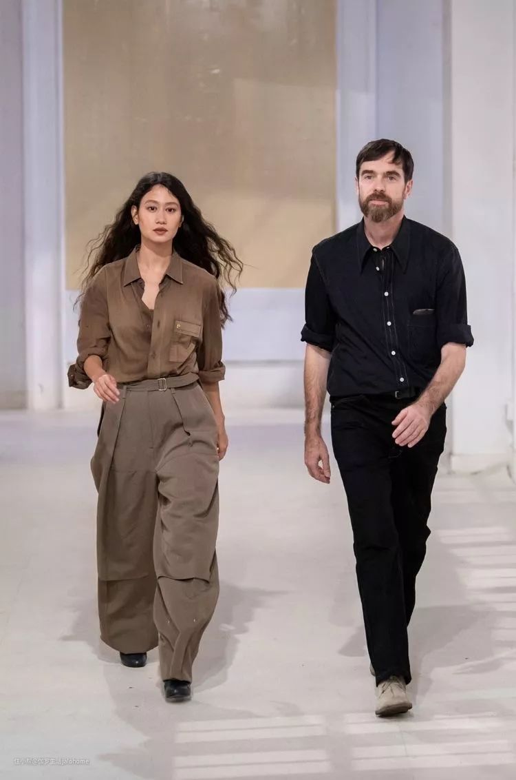 Hermès历任首席中,我最喜欢的是Martin Margiela, 第二就是Christophe Lemaire。而至于Sarah Linh Tran嘛——这对神仙CP相识恋爱和共同创业的故事满网站都是。话说有一年,Christophe在一间酒吧喝到凌晨,突然看到当时还是学生的Sarah,觉得来电就上去搭讪。两人话题从电影到艺术到时尚,彼此共同之处太多,相互吸引,于是就走到了一起……也曾有传言说是眷侣不久前已经分手——爱分不分,八卦不是重点,重点是,这对CP在圈里圈外公认的好趣味。每年Lemaire发布会结束时,他俩会穿着自己设计的款式携手出场谢幕,风度潇洒,常常引发观众感概:“比走秀的模特好看啊。”
