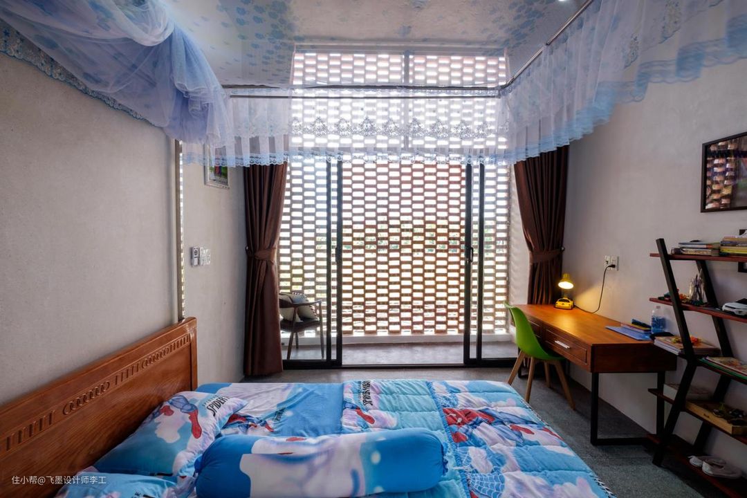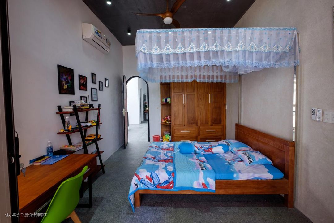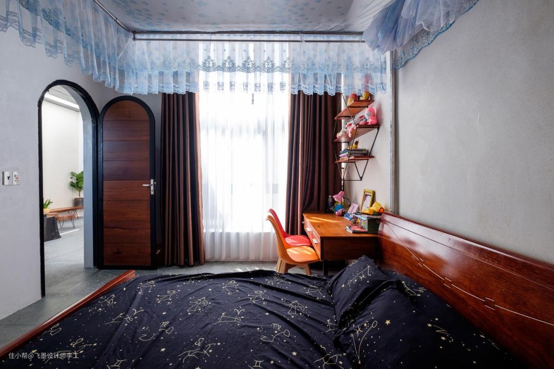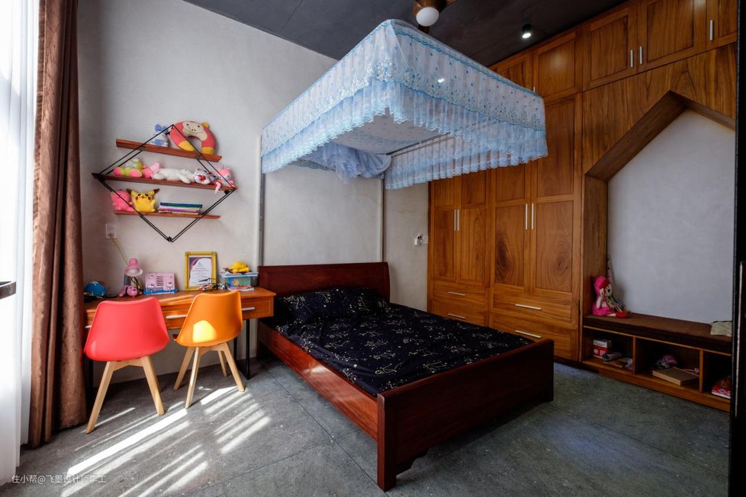 二楼主要是两个孩子的卧室,风格都很类似,女儿的房间里除了进出门处的小书桌,还有那个熟悉的床幔。