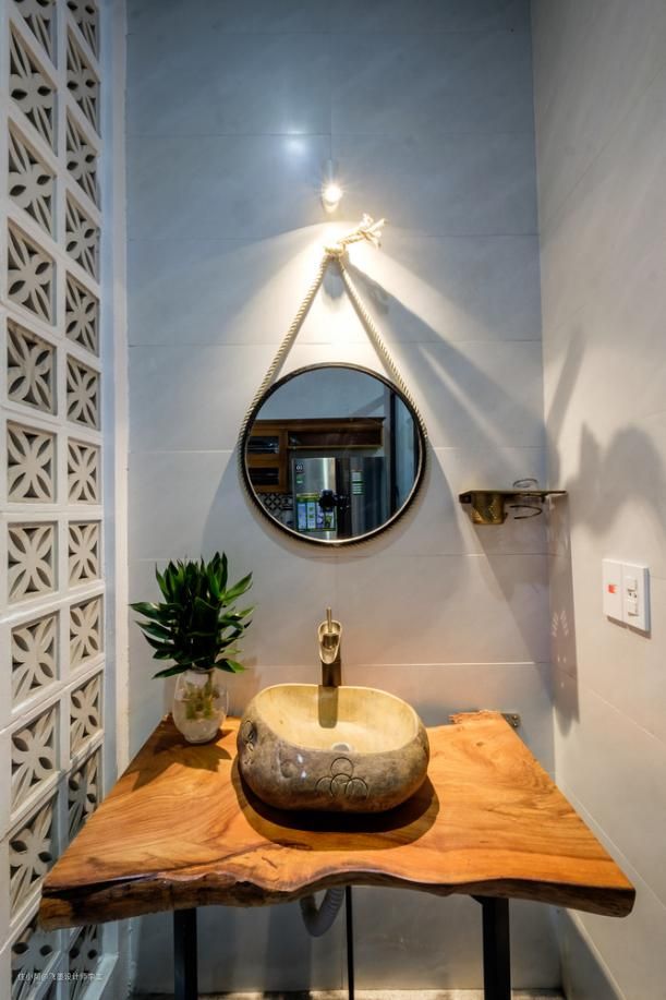 亮点六:卫生间里洗漱台被单独隔出了一个小空间,不规则的洗漱台看起来还挺有创意的,