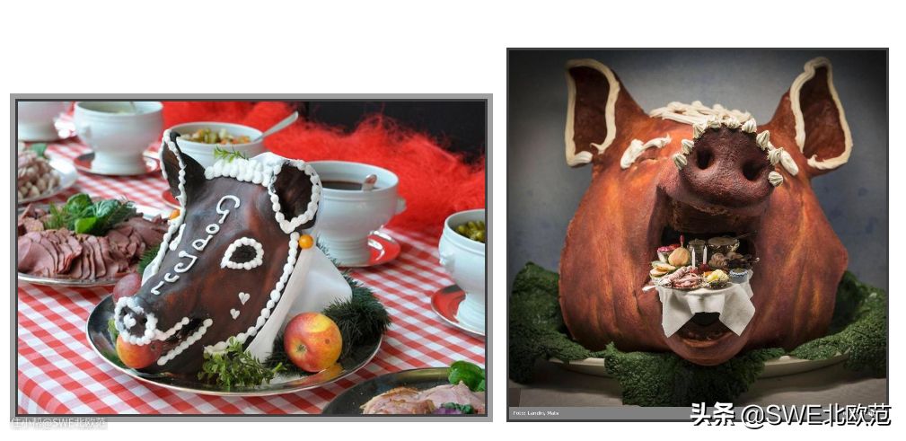 但是你不要真的去吃这颗猪头哦。因为它只是圣诞自助餐桌上的装饰。