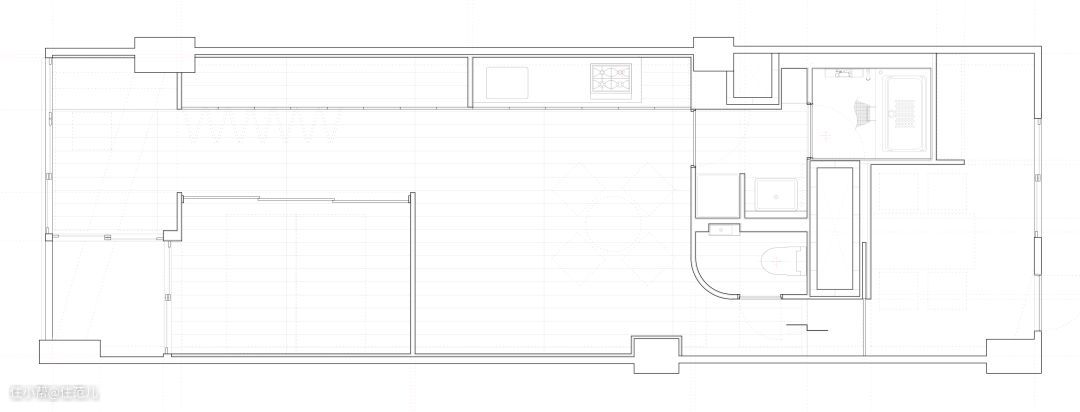 这间位于东京62.81㎡的公寓,是已经有50年房龄的老屋了。原始户型是长条一字型,采光不足,纵向走道面积也比较小。