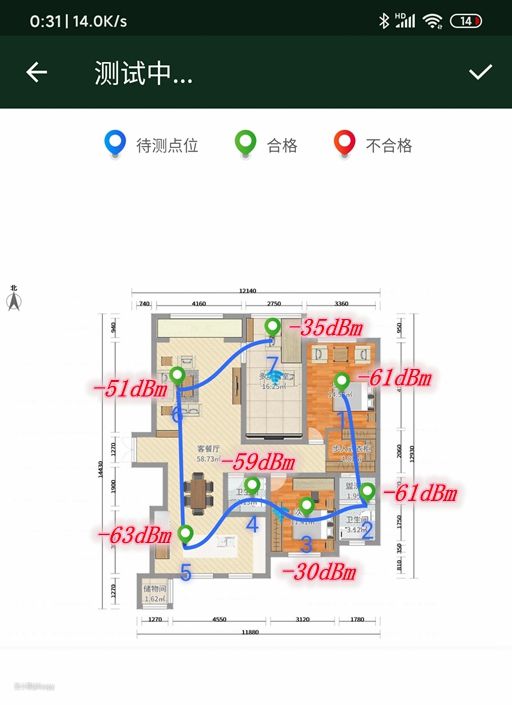 ▼经过软件信号质量实测,在2节点覆盖下,全屋155平的5G覆盖没有任何问题。