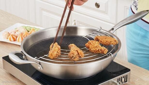 沥油架适合做油炸食物的时候使用,半圆形设计,弧形漏网,方便挂在锅子边缘上,炸好的食物可以马上放在上面,轻松沥油,这样不需要漏勺大力抖动,又累还有喷溅的危险,非常方便。同时,没有架子的一面继续炸制食品,两不耽误。