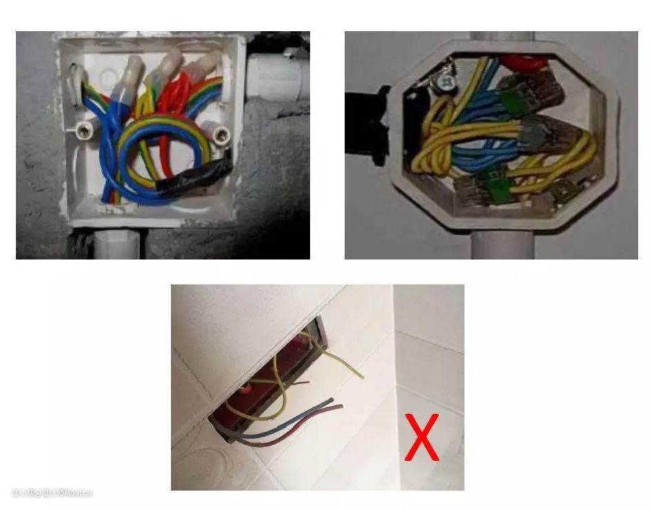 ⑤ 隐蔽工程验收后,施工现场所有裸露线头应进行保护,建议使用压线帽或接线端子连接,至少应使用绝缘胶布包裹。
