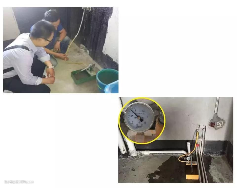 先用堵头将所有内丝堵死,用压力表连接,进行打压试验(家装压力控制在0.6-0.8MPa),打压完成后半个小时后不掉压,并检查所有管道和接头处是否有漏水现象。