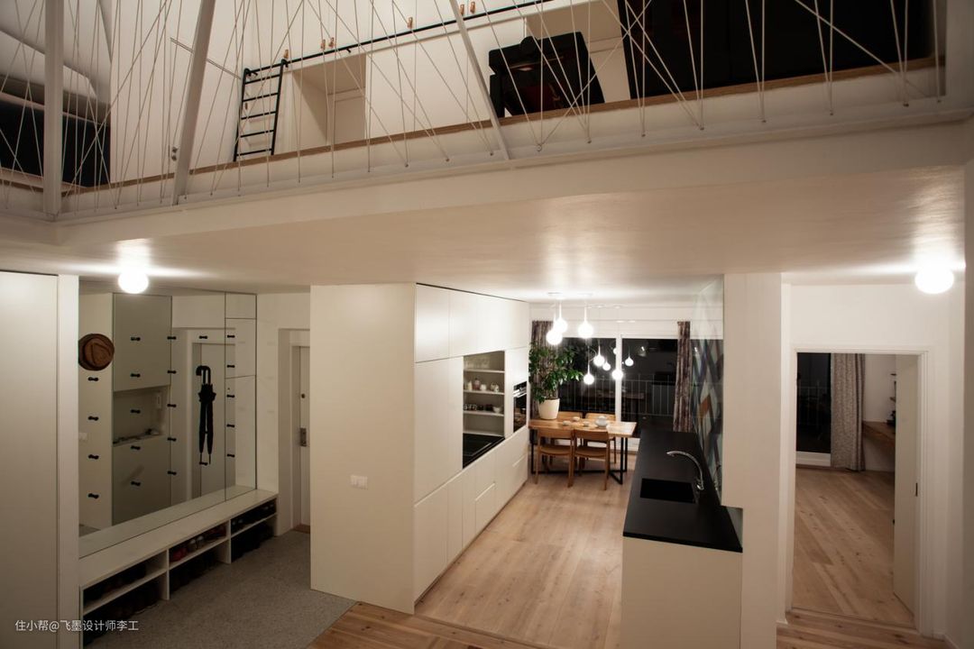 二楼上去一眼看过去每个卧室门口都打满了柜子,这收纳空间真的是无人能比啊,平时拿东西都只能靠爬梯子了。